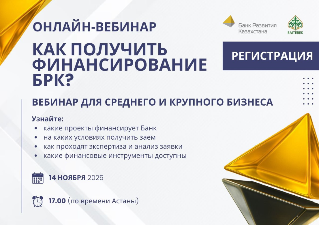 Вебинар ірі инвестициялық және экспорттық жобаларды іске асыруды жоспарлап отырған компаниялардың басшылары мен қаржы директорларына пайдалы болмақ.